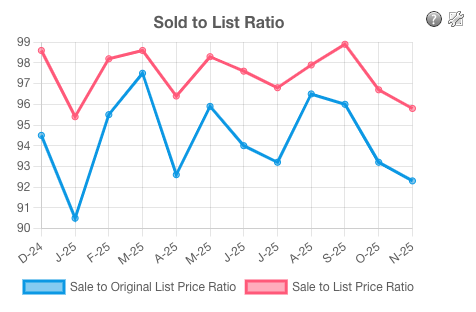 The sold to list price ratio is falling showing that more price negotiations are happening